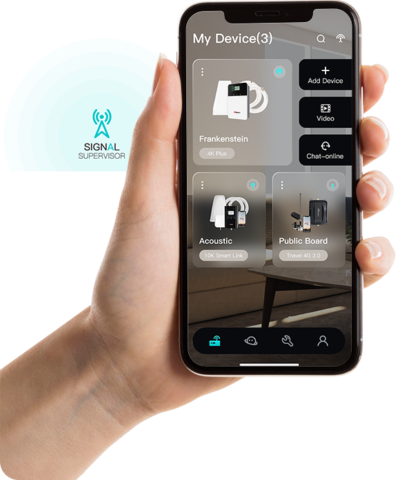Cornerstone of HiBoost. Using the cloud-based APP, you are able to connect devices via Bluetooth or Wi-Fi. allowing users to monitor the live status of HiBoost cell phone signal boosters remotely from a mobile device anywhere at any time!
